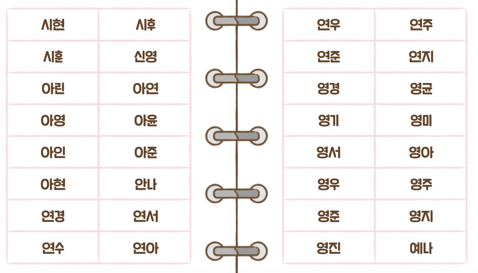 아래 이미지에서 과자에 새겨진 이름 리스트를 확인할 수 있습니다.