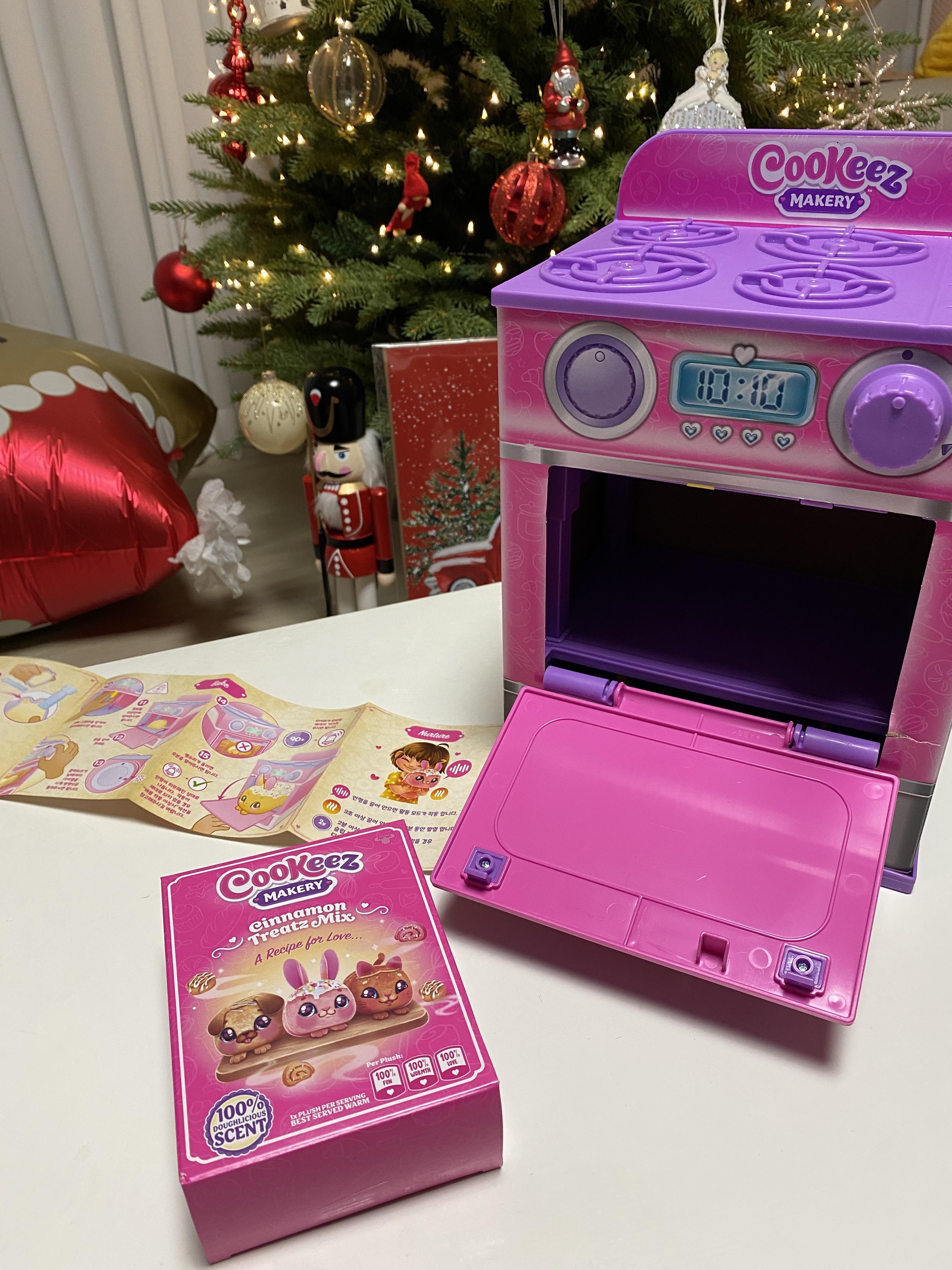 외관은 완벽한 오븐처럼 생겼다. 마법의 가루와 물을 섞어 반죽하면 쿠키즈펫이 만들어지는 오븐 모형 플레이 세트이다. 쿠키 메이커즈는 핑크에디션, 민트에디션 이렇게 2종류가 있는데, 2종류는 각각 다른 인형들이 랜덤으로 나오고 체온처럼 따뜻한 자동 발열 기능과 달콤한 향기가 솔솔 난다고 해서 너무 기대가 되었다. 핑크 에디션에서는 시나몬향이 민트 에디션에서는 구운 빵향이 난다.