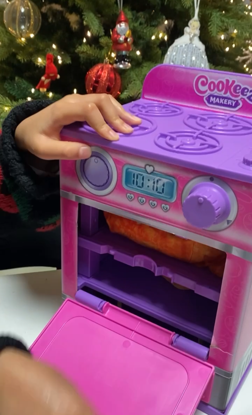 벨소리가 울리면 오븐을 연다. 반죽이 쿠키즈 펫으로 변해 따뜻해진 상태로 나온다.