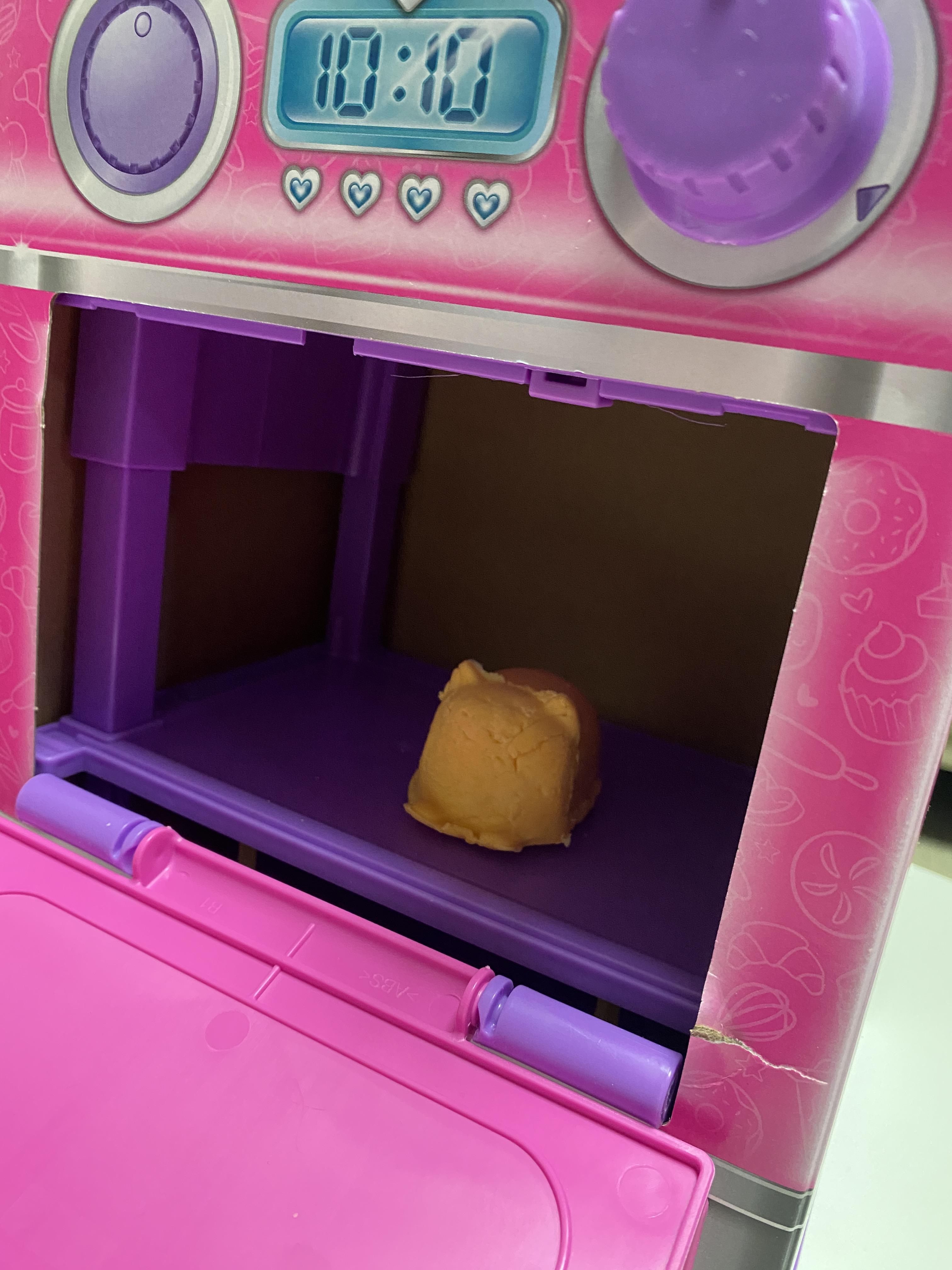 만들어진 점토를 오븐 안에 넣고 문을 닫은 후, 딸깍 소리가 날 때까지 시계방향으로 다이얼을 돌리면 째깍째깍 소리가 나며 타이머가 돌아간다. 90초를 문을 열지 말고 기다리면 된다.